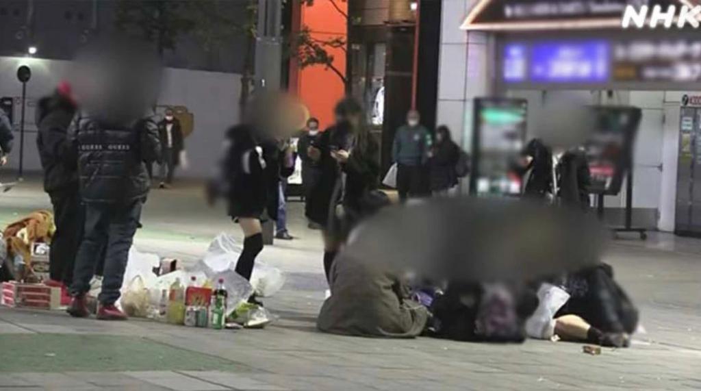不是在马路边上蹲着抽烟喝 Ch ū hai(烧酒兑苏打水),寻找约会伴侣,就是在街上拍摄地雷系视频,如果身上有闲钱,通常会去周边的牛郎店消费。
