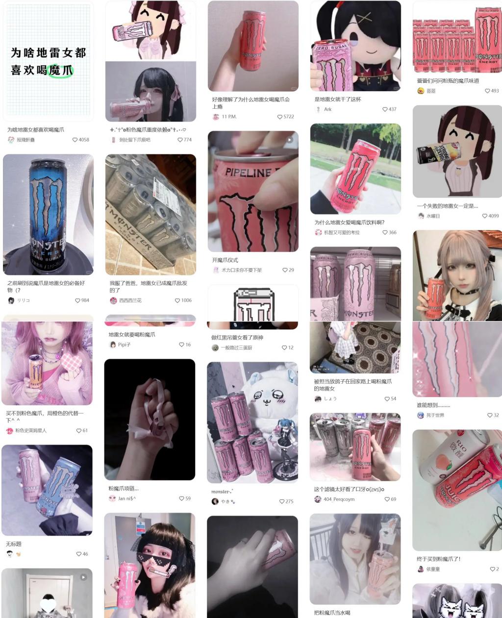 随着与粉魔爪合影的帖子越来越多,该饮料逐渐也纳入到了地雷系的核心出装当中,并经常与各种精神类药物一同出镜。