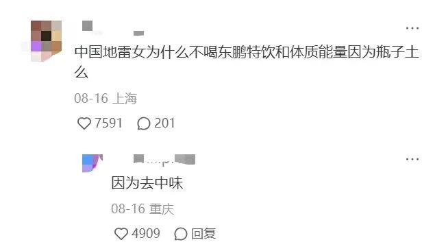按大伙儿说,咱中国的地雷女们就得喝东鹏特饮。