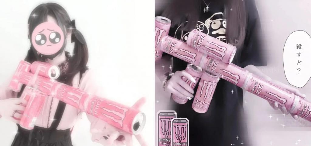 有人仪式感开箱、有人分享上瘾体验、有人感慨拍照出片,更有甚者将粉色饮料空瓶组装成枪械,化身武器大师。