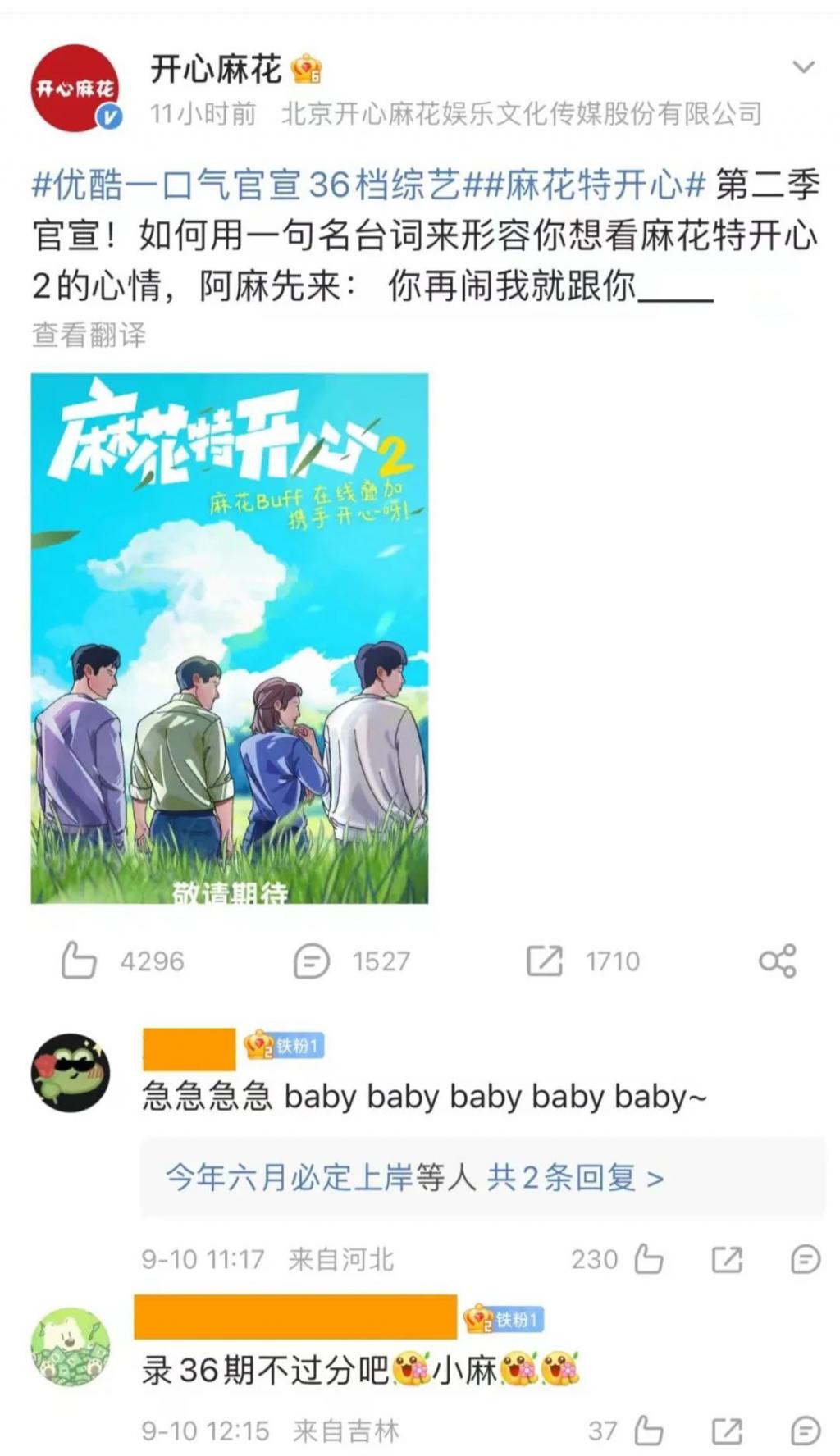 其实不止我亿个人等,这两年节目官博一有动静就有人留言催更,i 麻花真是等麻了。