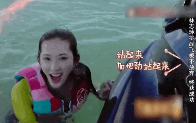 在综艺里玩挑战游戏,她泡在海水里一次次失败,又一次次尝试。