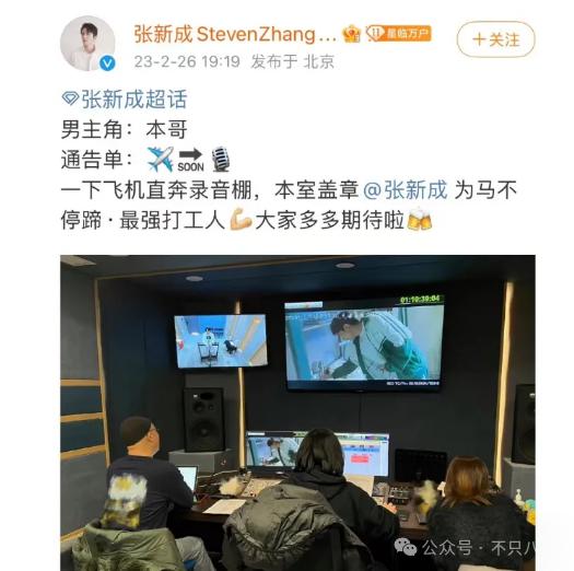 绯闻发酵后,小张工作室宛若无事发生,甩了一张他在录音棚打工的照片 ↓