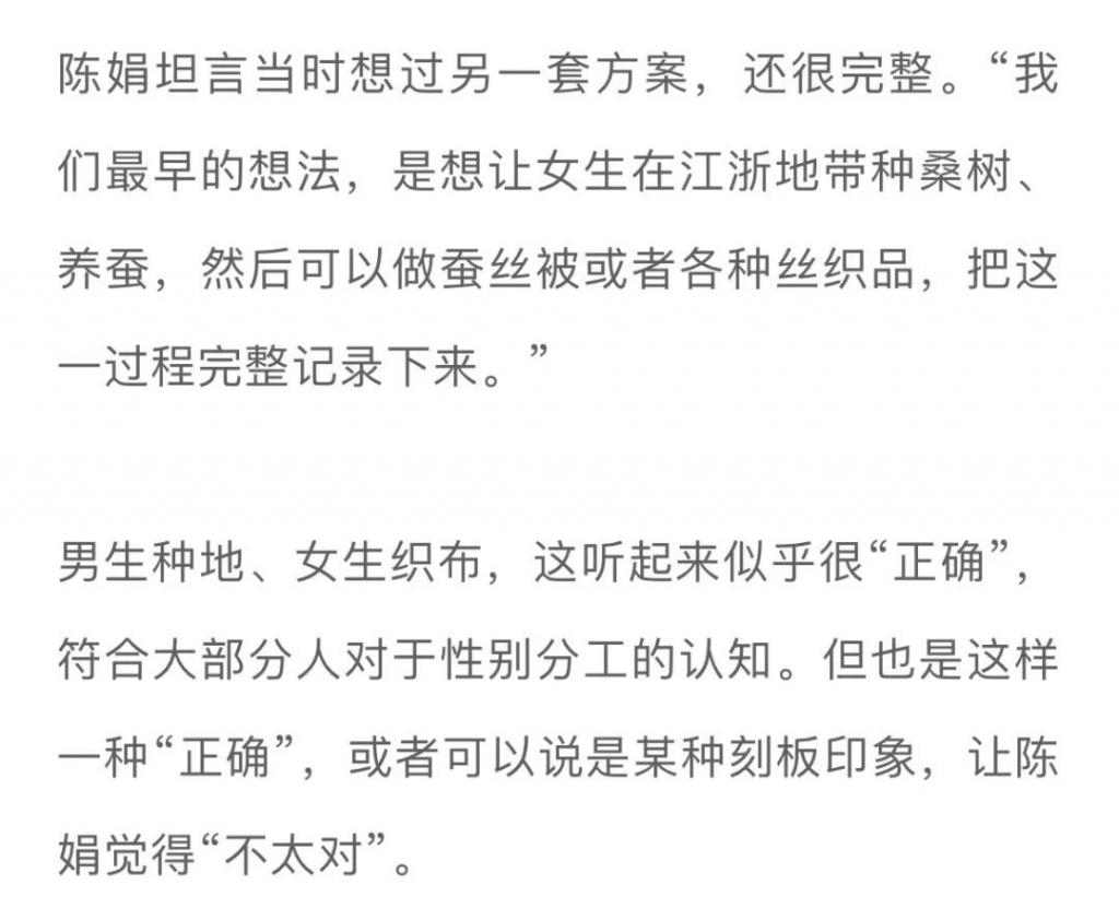 《月亮》总导演曾在采访中提到,原本节目组是想让女孩们在江浙地带种桑树、养蚕、做丝织品。