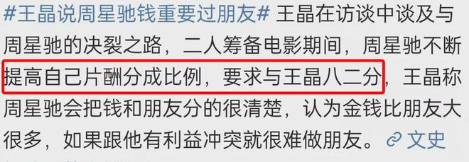 王晶最近在油管上说周星驰,对钱看重,要远超过对人。