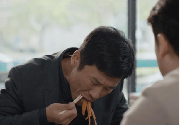 虽然只是一场吃面时的戏,但几个简单的吃面动作,在王骁这里全是细节。