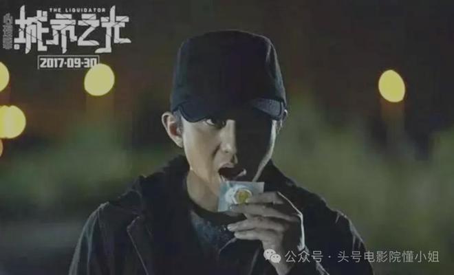 第三个是,邓超在电影《心理罪之城市之光》里,吃避孕套。