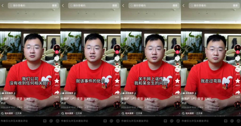 9 月 4 日,卢文庆发布道歉声明,承认了自己 " 走过弯路 ",但澄清了与女主播的私情,而对于消费者赔付的问题,则将重点转移到了 " 我们公司没有收到任何相关部门就该事件的处罚 " 上。