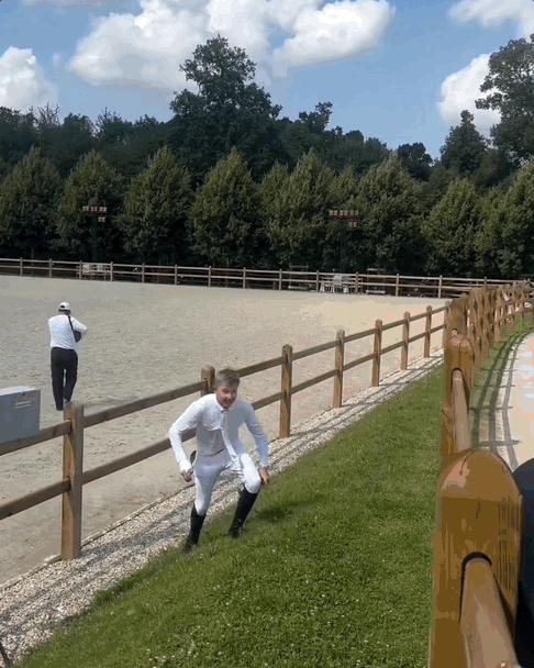 这位冲到场边亲吻女友的运动员,是来自英国马术队的 Harry Charles,他出生于马术世家,父亲在 2012 年的伦敦奥运会也曾拿下马术项目的金牌。