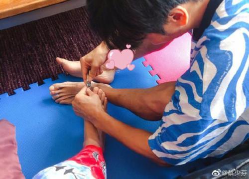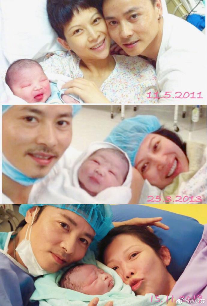 蔡少芬分别在11年、13年同19年生了2个女孩和1个男孩,三次怀孕老公都非常细心体贴的照顾老婆蔡少芬,看到老婆挺着大肚剪指甲有困难,就主动给老婆剪脚趾甲。