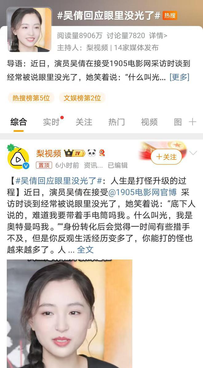 吴倩霸气回应“眼里没光”,高情商解释显成熟,网友观点各异