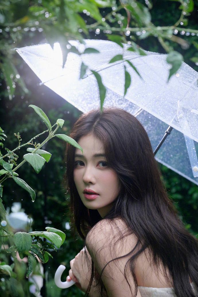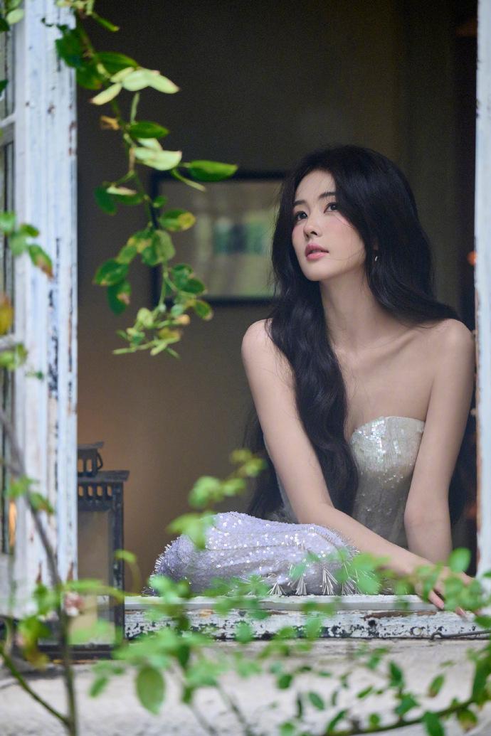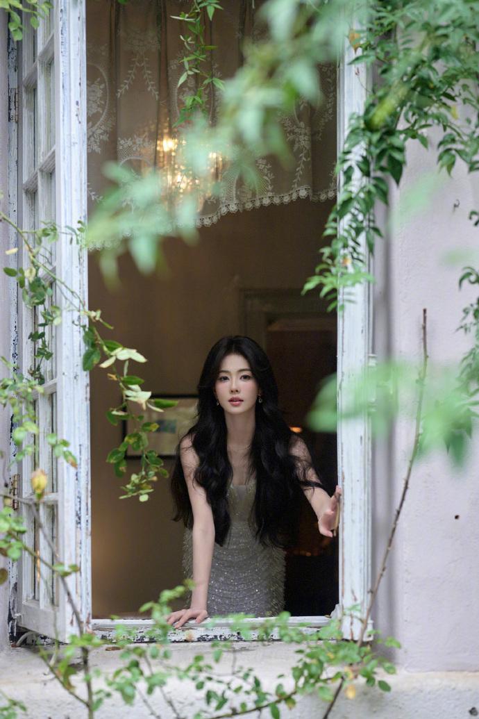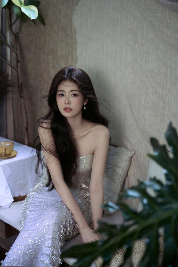 近日,白鹿发布一组活动造型图。图中,白鹿身着亮片抹胸长裙,妆容清透,手握雨伞,穿梭于绿植之中,清新恬静。