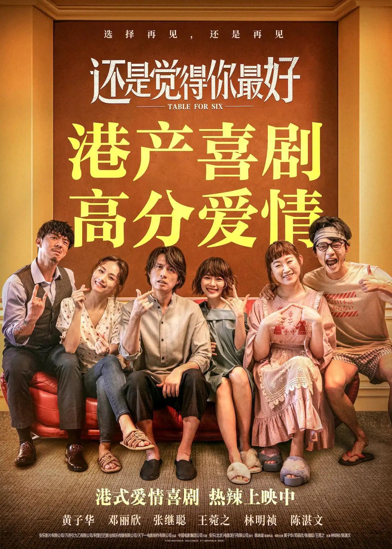 第三名:《饭后攻心》/《还是觉得你最好》2022年9月8日在香港上映最终票房7700万港币,9月9日在内地上映最终票房达1.07亿人民币。影片主要讲述由大哥(黄子华饰演)的前女友(邓丽欣饰演)竟成了二哥(张继聪饰演)现女友。自尊心驱使下,大哥答应了新结识的喵喵(林明祯饰演)追求。三弟和女友的姐弟恋同样面临危机。同一屋檐,3对情侣,4对恋情,每晚的聚餐逐渐演变成饭桌修罗场。本片豆瓣评分7.4。