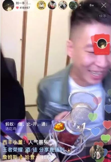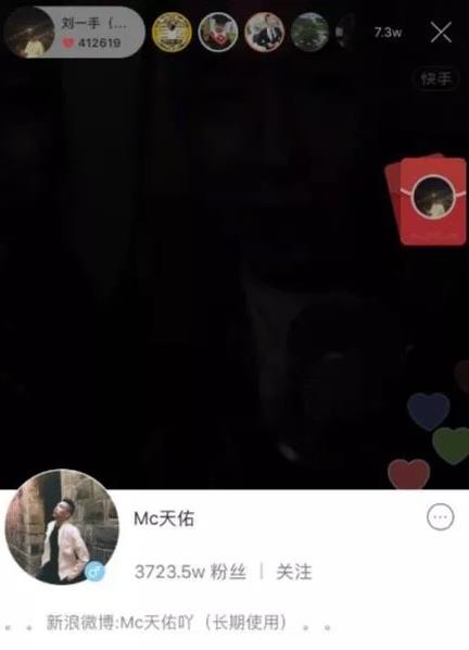 MC天佑晚上现身好兄弟刘一手直播间,送上祝福。