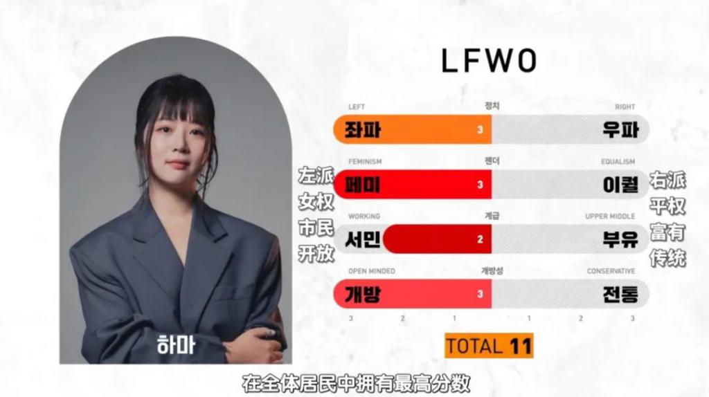 相对地,也有和她各方面倾向都相反的嘉宾。