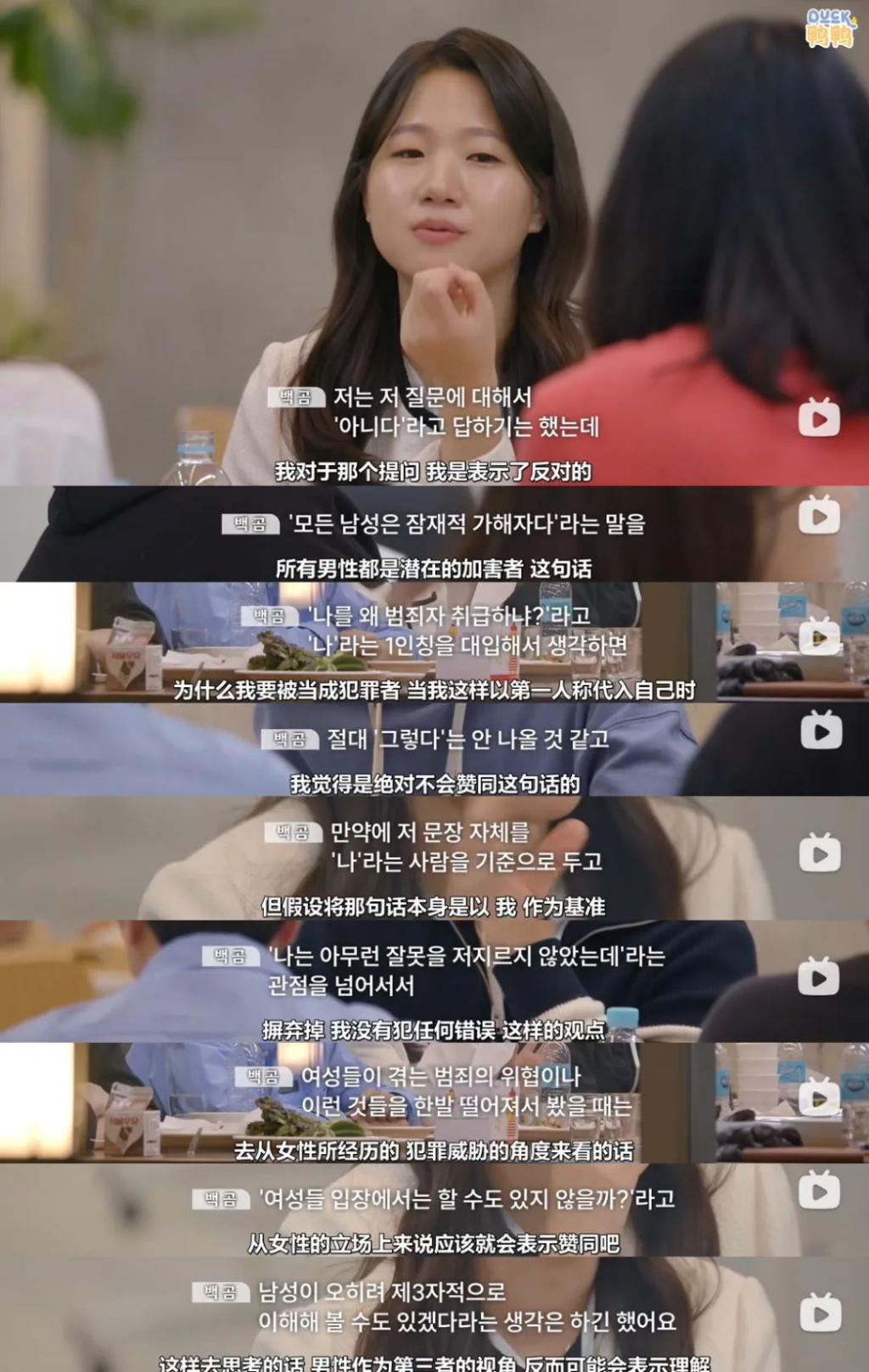她明确表示,在韩国社会中,作为女性生活是得到了一些好处的。