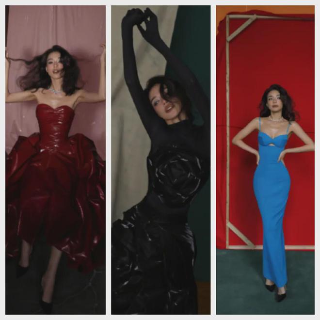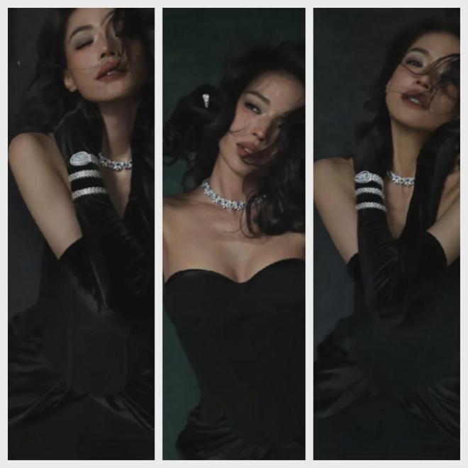 黑色丝绒抹胸长裙,搭配简单大气的银色首饰,往布景一站,随手几连拍就是大片。