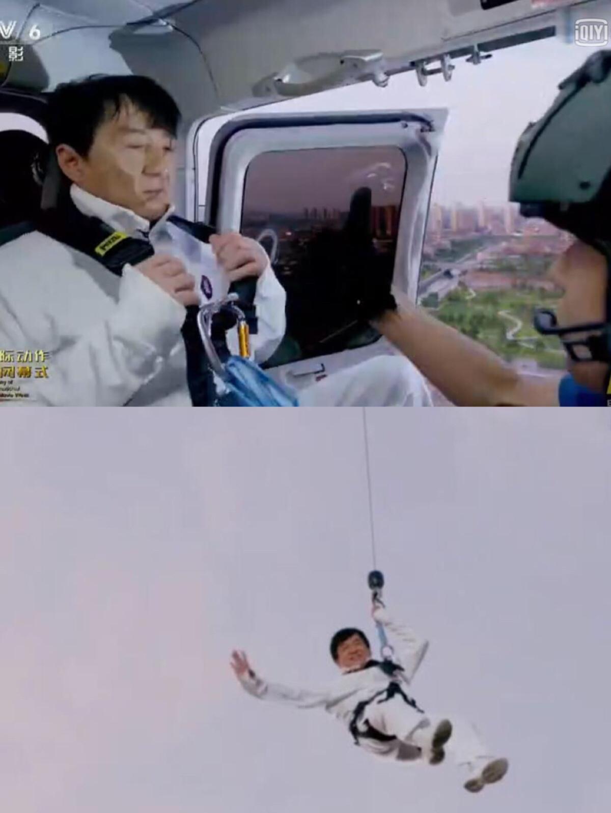 成龙更是乘直升机霸气空降现场。在动作片里的成龙犹如神人,无所不能,此次借助绳索空降现场,也让到场的嘉宾和观众一睹了大哥风采。