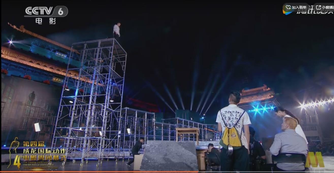 最动人的是当晚由动作电影人呈现的实景表演——《我是动作人》,高空爆破、打斗、撞玻璃、高空跳跃,这些常人不敢尝试的动作却是动作电影人拍摄时的日常,这一幕幕精彩的表演展现了动作人电影人台前幕后的艰辛与不易。在一个个危险动作的背后,也让人感受到了他们高度的敬业精神。台下的成龙、吴京看到这一个个动作场景,感同身受,热泪盈眶。