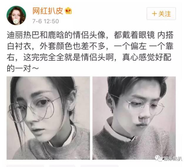 鹿晗迪丽热巴惊现情侣头像?戴同款金丝眼镜还都穿着灰色外套