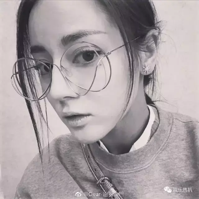 迪丽热巴瞪着大眼睛,嘟着小嘴巴,鼻梁上架着今年最流行的金丝眼镜,还戴着精致的花朵耳钉,整个人显得冷艳又不失温柔。