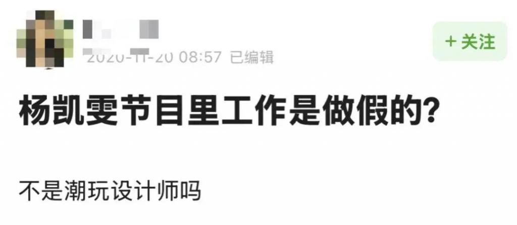 只是在这番回应后又有人爆料,说她从来没有上过班,所谓的潮玩设计师不过是节目安排的假工作⬇️