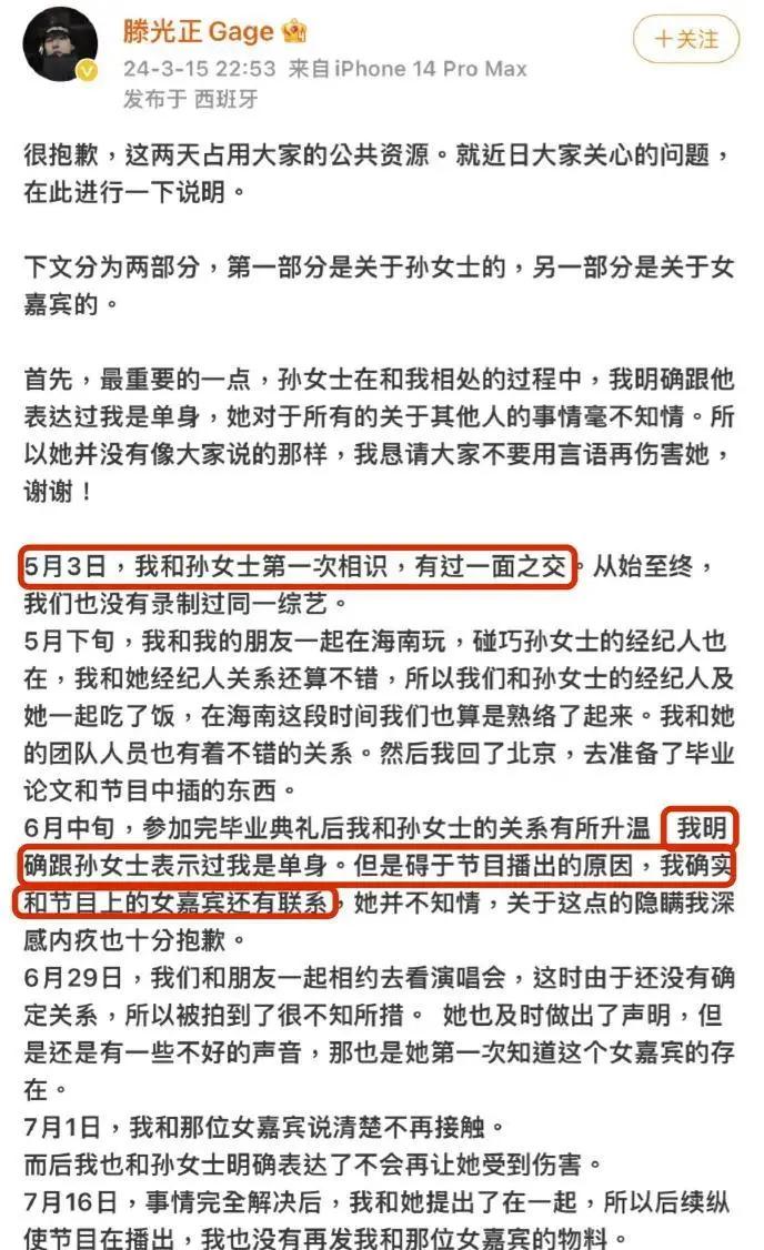 之后滕光正也现身回应,承认了自己跟孙怡、沛沛存在时间线重叠,但对自己劈腿的事实咬死不肯承认⬇️