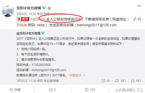 在变形计官方微博中,#变形计#主人公报名的相关信息被置顶,招募活动仍在进行中。据悉,2017《变形计》将于4月开播,而这档综艺自开播以来就备受争议。