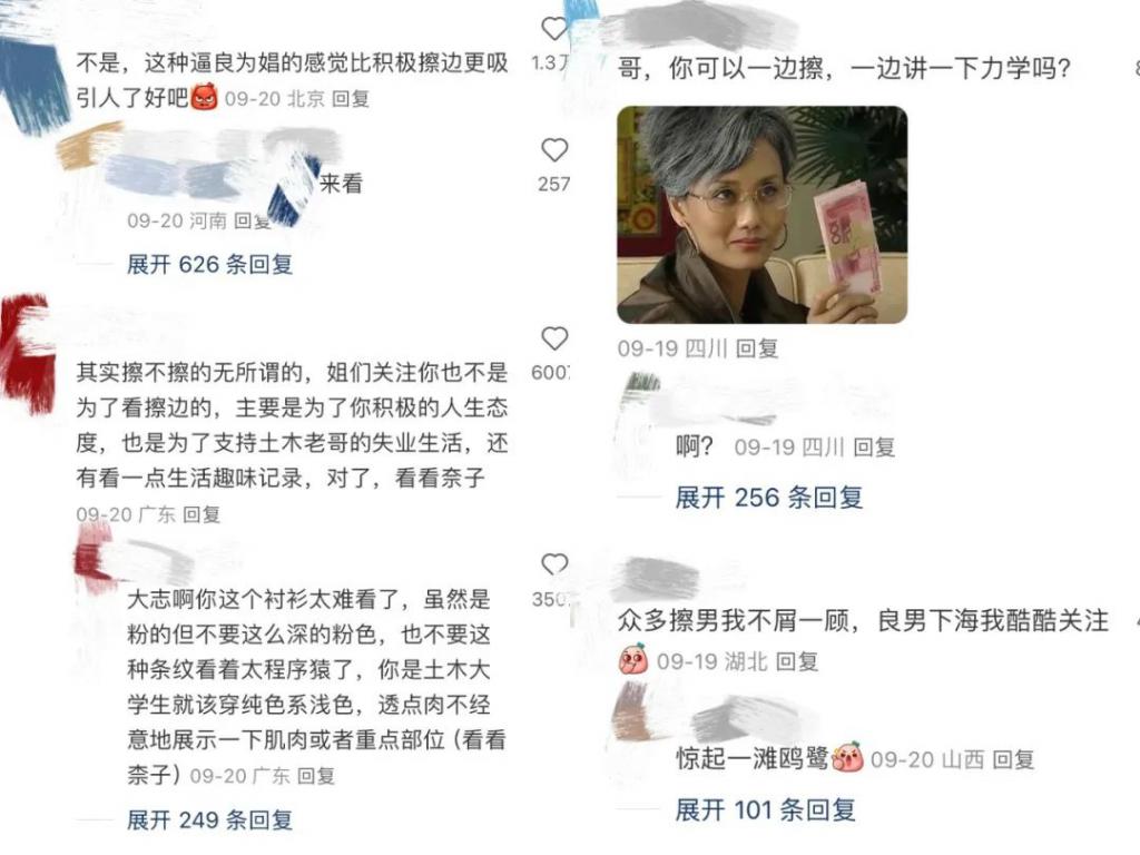 高学历辞职下海的人设反差所带来的吸引力,就像网友所说 " 这种逼良为娼的感觉比积极擦边更吸引人 ",甚至有人调侃 " 哥,你可以一边擦,一边讲一下力学吗?"