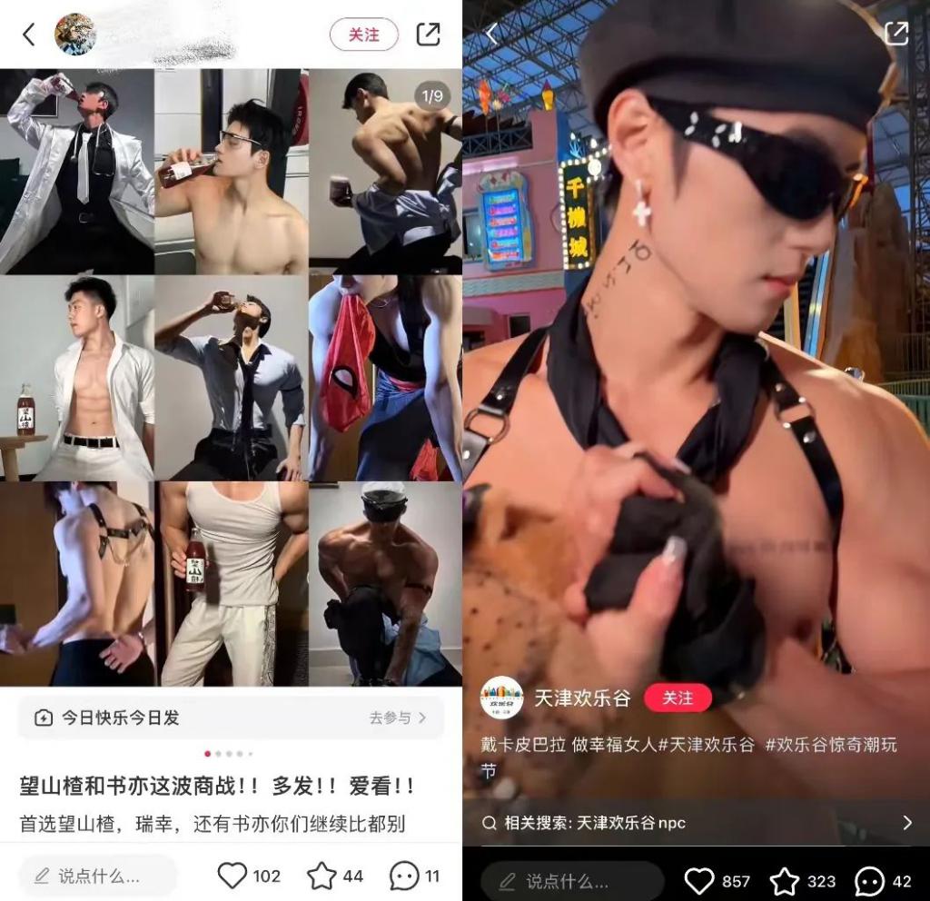 文旅也不放过这一热门生意。以天津欢乐谷为代表,这里不仅有烟花、无人机表演,还有与肌肉男 NPC 互动摸腹肌环节,去年天津欢乐谷还曾推出盲盒男友活动。有人觉得油腻,有人则觉得心动。