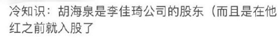 以李佳琦来说,在他还是个没啥名气的小主播时,胡海泉就瞄准直播行业,入股其公司。