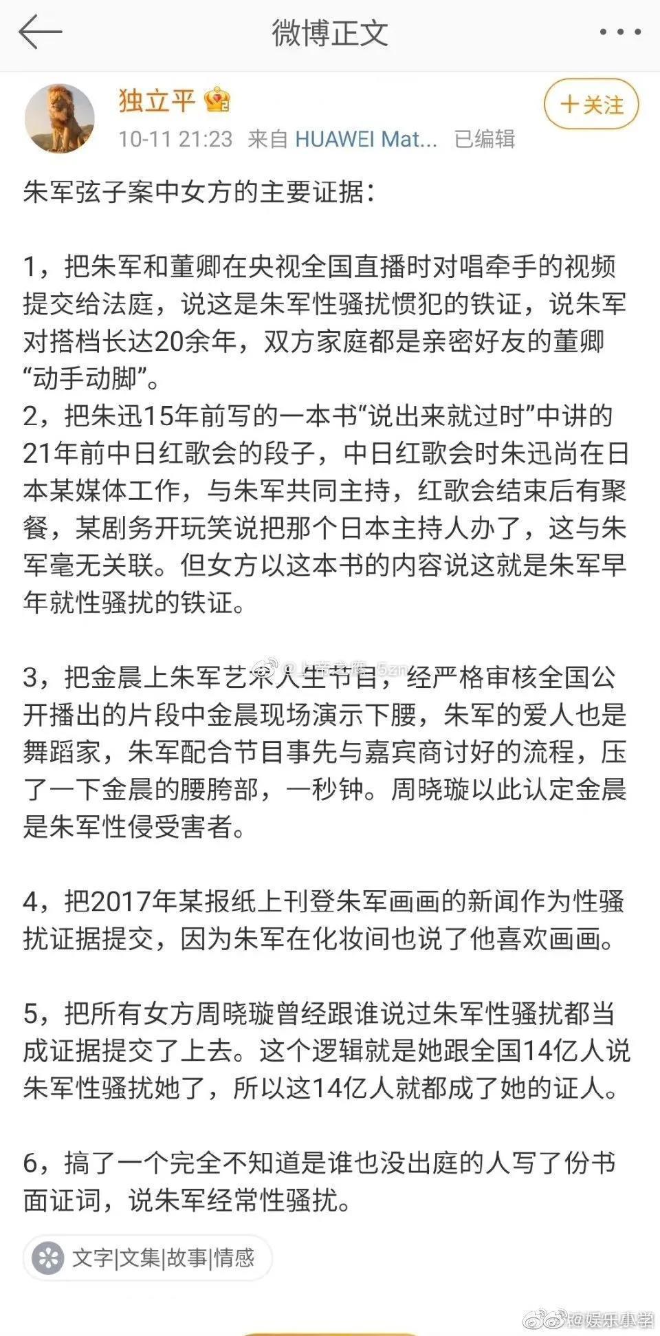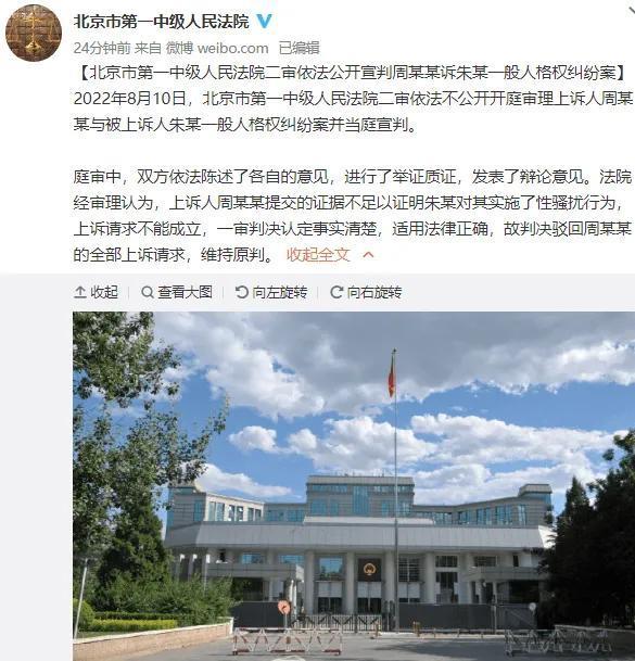 8月10日,朱军与弦子“性骚扰”案终审宣判,驳回弦子上诉,朱军胜诉。