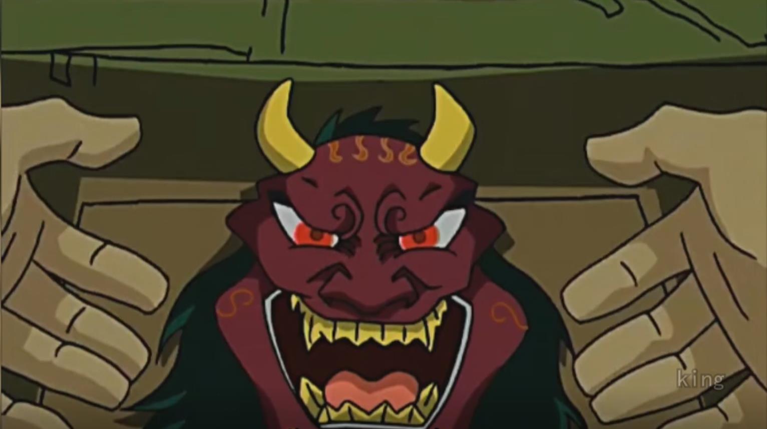 然后就是巴特面具,阴差阳错地被小玉养的宠物狗给带上,召唤出带有巨大翅膀的鬼影兵团,棘手的飞行能力,再加上从手中射出的光波,即使利用三大符咒的力量,也难以与之对抗。