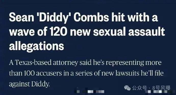 目前,已有 120 名原告刚刚站出来反对吹牛老爹肖恩 · 库姆斯,提出新的性侵犯指控,并发誓要揭露一切。diddy 已被关押在联邦监狱,等待进一步的审判。