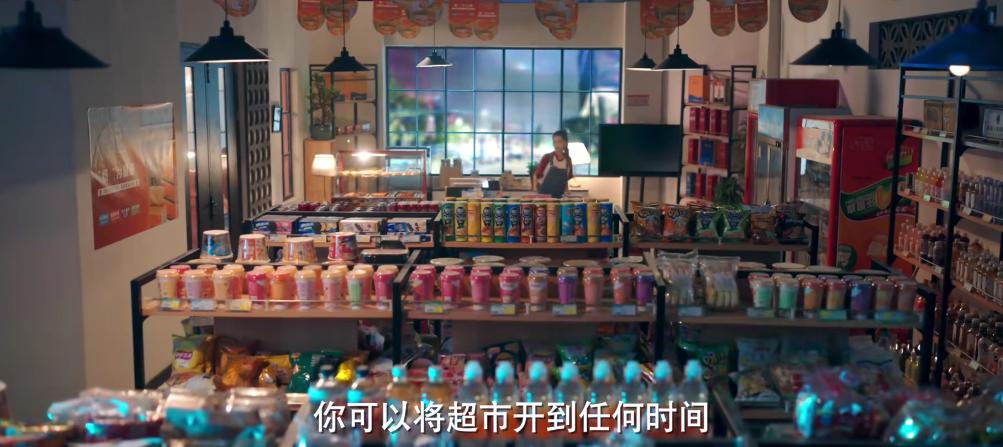 然后咻的一下,画面里出现了一个 AI 的声音,说这个超市已经连入了一个高科技的系统,只要启动就能将超市开到任何你想去的地方。