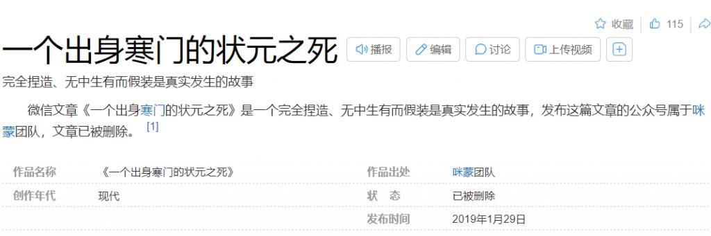 直到她杜撰莫须有的 " 真人真事 "《一个出身寒门的高考状元之死》大翻车,导致她的账号被封。