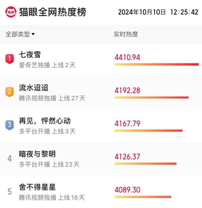 《暗夜与黎明》的热度被《七夜雪》接过来了。