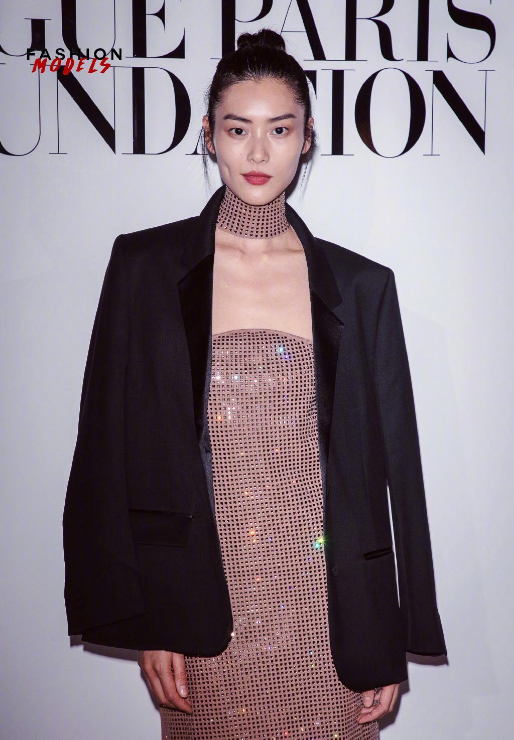 刘雯穿裸色水钻裙上热搜?裙子自带发光特效,搭配黑西装气场炸裂