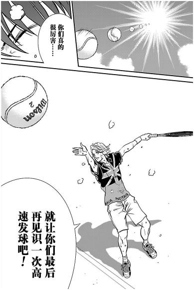 不二的进化就到此为止啦吗,NONONO,不二的进化更吓人,请看正式的U17比赛,对阵澳大利亚队,仍旧是双打比赛,对手拥有超快速发球,超光速粒子发球,这是一招完全无法回击的发球,球的轨迹肉眼不可见,澳大利亚的超快速进攻令日本队实在是难以抵抗,所幸不二周助的进化没有停止,看看不二周助是怎么破解这强力的发球吧。