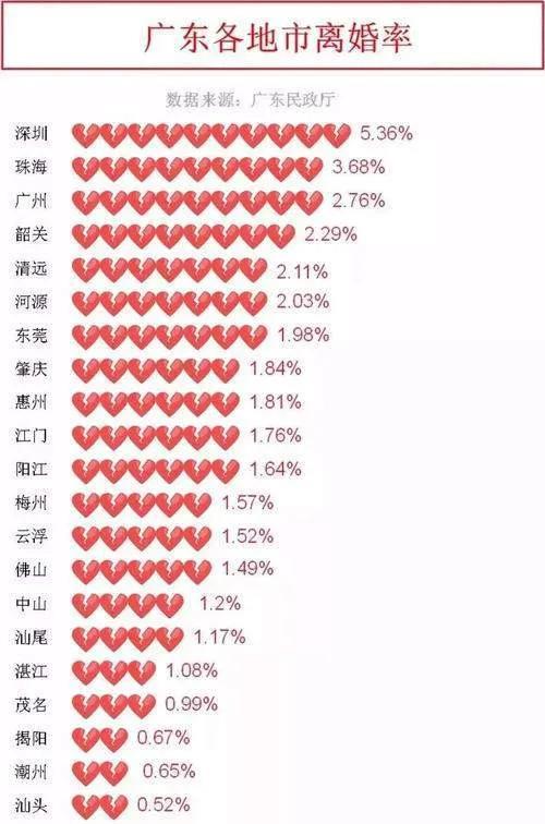 为什么会给人这种印象呢?首先是当地社会还比较传统,虽然广东开放得早,但当地的工业化程度还不是很高,思想,文化,人情社会还保留着更多的传统习惯,加之当地外来移民较少,属于熟人社会,离婚率一直在全国处于最低位。