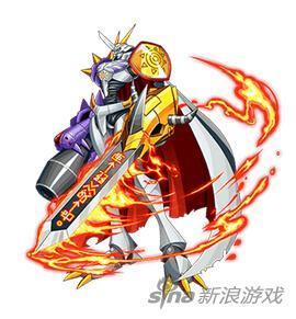 病毒克星的战斗暴龙兽及金属加鲁鲁兽,通过期待善行的人们强大的意志融合,诞生出“皇家骑士”之一的圣骑士型数码兽。