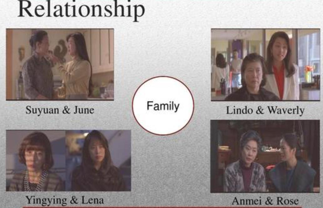 尽管影片整体呈现的是女性觉醒的意识,但是笔者认为,导演并没有一开始就切入到主题,而是采用循环渐进的方式,先让观众明白这部影片和女性家庭离不开的关系。影片的开头便是四个女人围在一起打麻将,尽管生活在美国,说的是英语,但是在她们身上我们可以感受到很浓烈的中国农村气息。影片是用不断回忆的手法来推动剧情的发展,第一个回忆的女人便是吴箐妹,通过回忆我们知道,吴箐妹的童年非常无趣,每天只能不断练琴,而她的母亲就像是无情的机器一般,为自己安排好了每一个时间段,终于她爆发了,告诉母亲自己对于母亲强迫自己练琴的厌恶,但母亲只是冰冷冷地回应:没办法改变了。