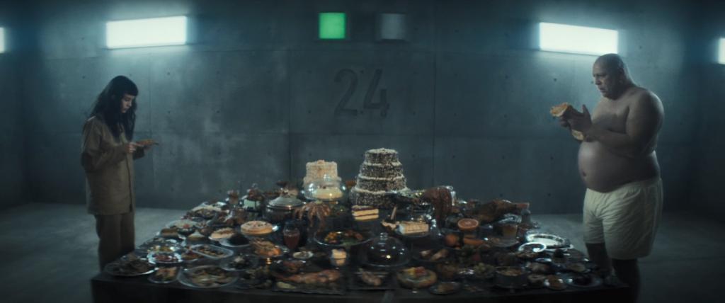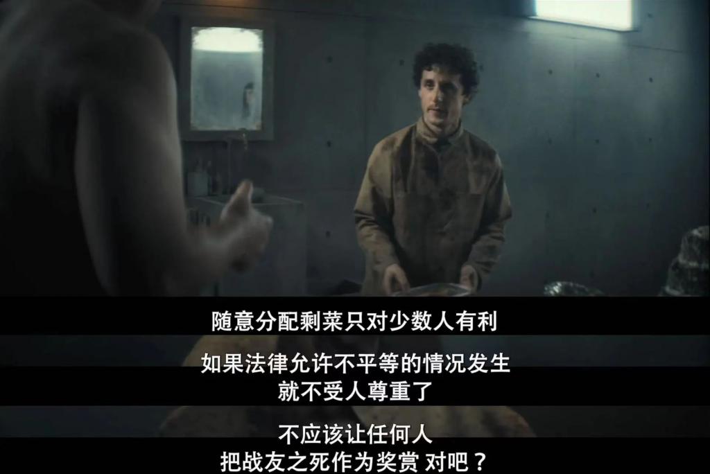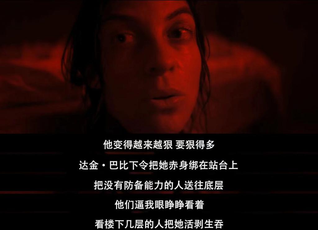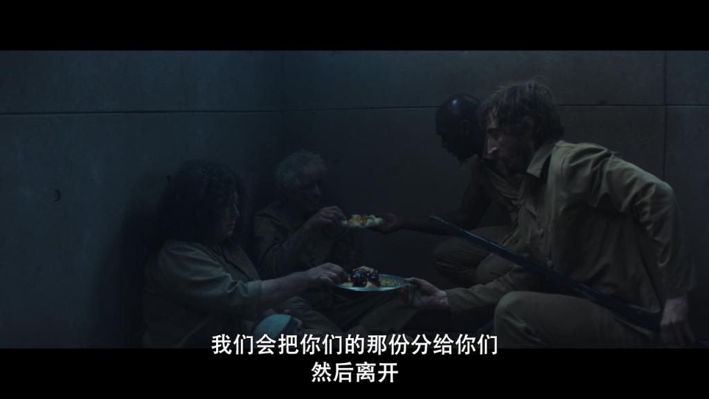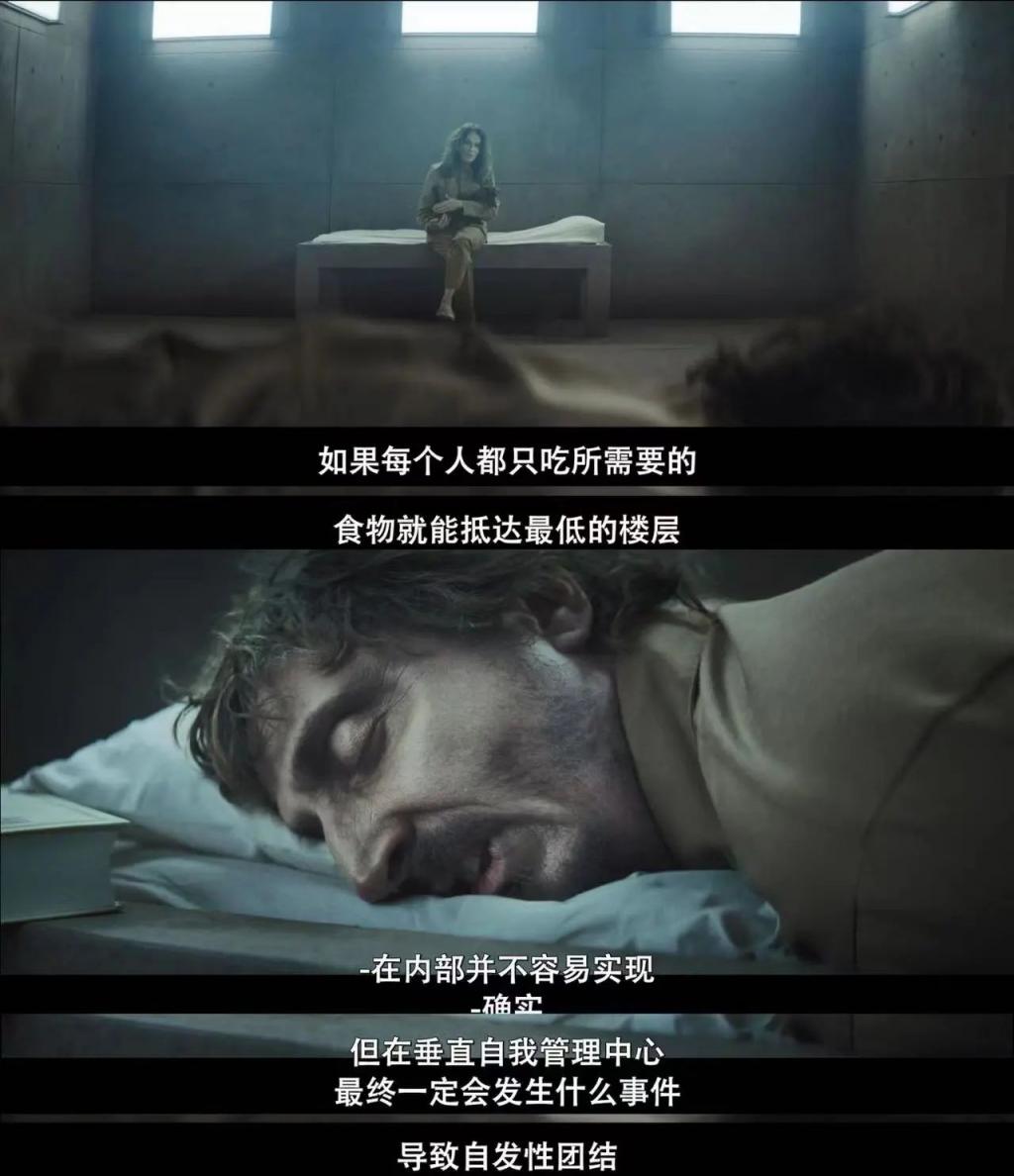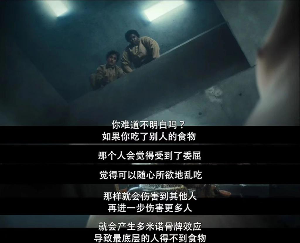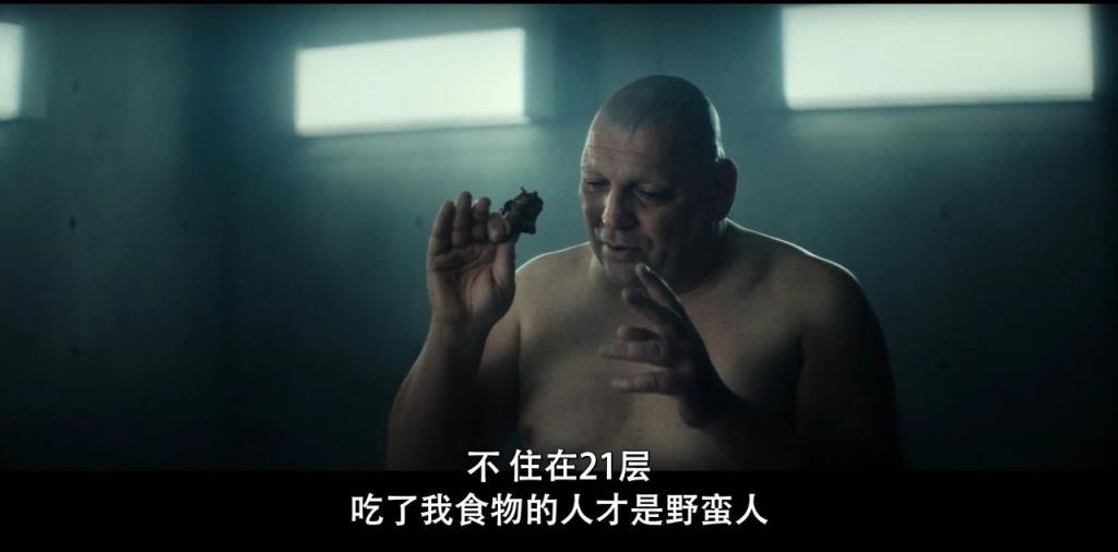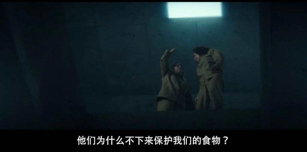 选择了和一位黑人室友随平台下落,守护食物直到底层。