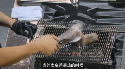 整个料理过程中,就看到他对着一块肉又烤又熏,时不时刷油冷却,十分忙碌。
