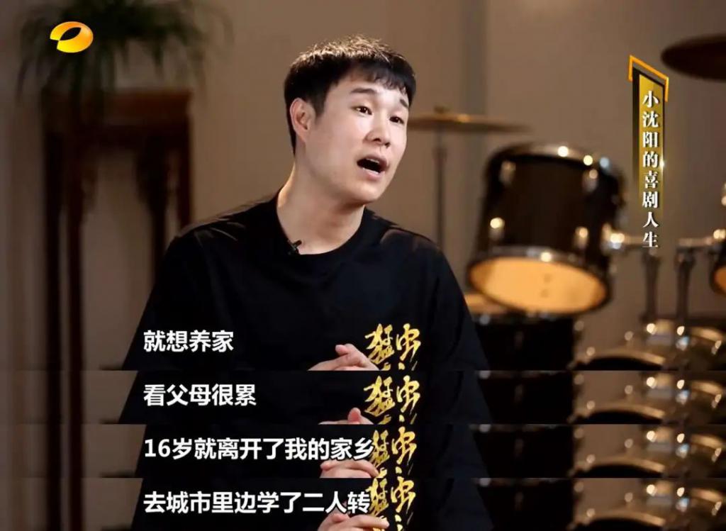 16 岁时,为了养家,小沈阳进城学起了二人转,认识了妻子沈春阳,两人一起搭档四处跑演出。