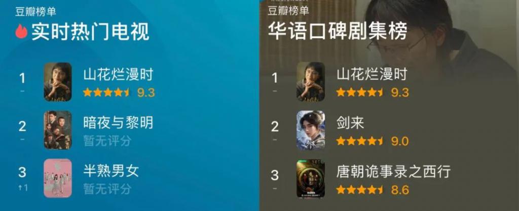 霸榜实时热门电视榜 Top1,华语口碑剧集榜 Top1。