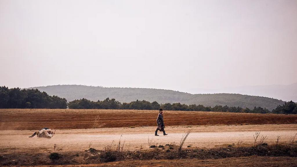 黄沙蔽日,愁云惨淡,荒凉的沙石间,两个男人在对峙。