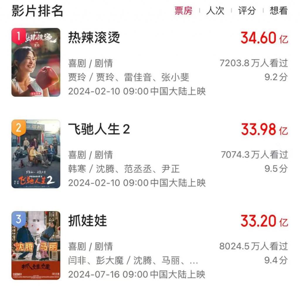 纵观今年票房榜的冠亚季军,均带有强烈的导演个人 IP 属性。《热辣滚烫》《飞驰人生 2》《抓娃娃》背后的贾玲、韩寒、闫非与彭大魔。这类头部导演,才是真正的话语权拥有者。