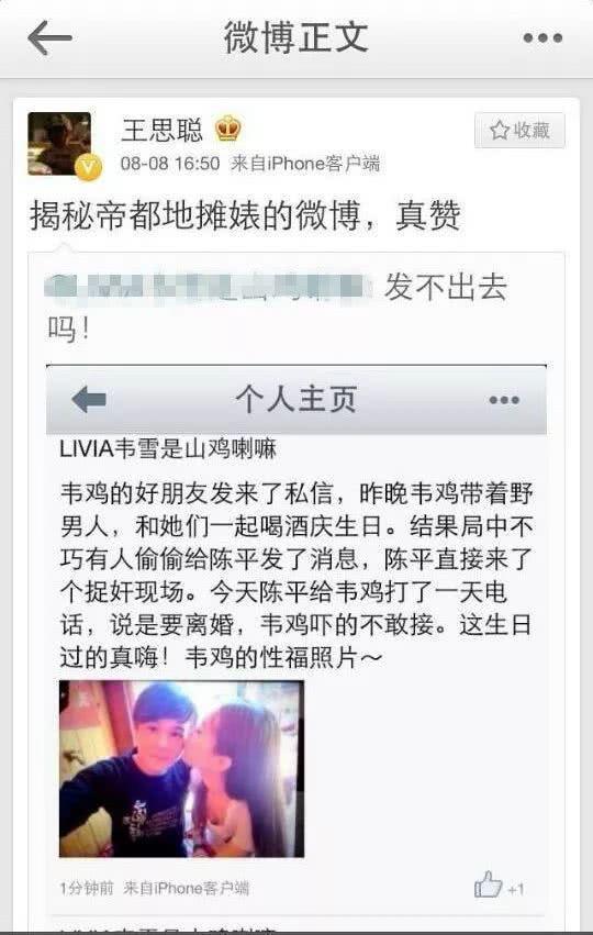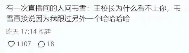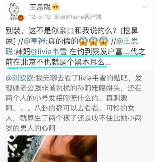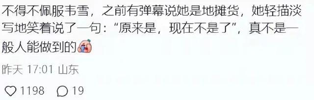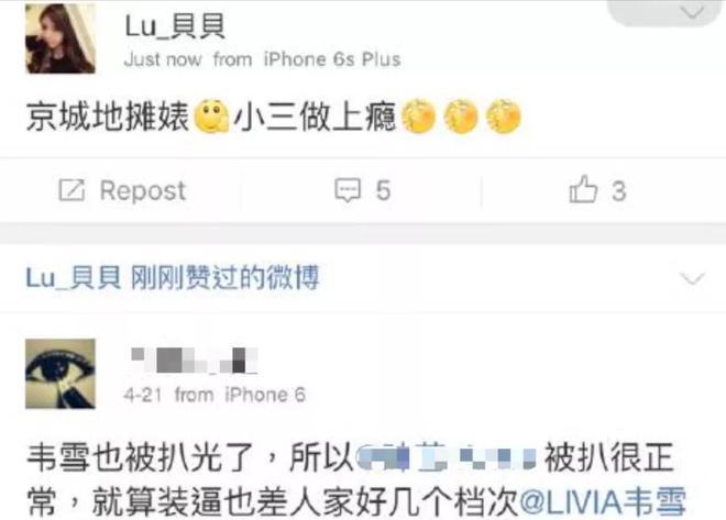 尤其是当时王思聪也发文内涵,骂韦雪是 " 帝都地摊 biao",也令人浮想联翩。