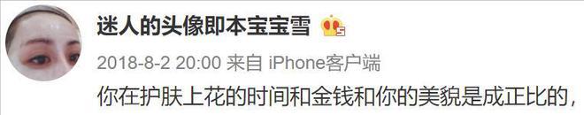 她说:" 你在护肤上花的时间和金钱,和你的美貌是成正比的,没有任何捷径。"